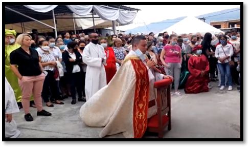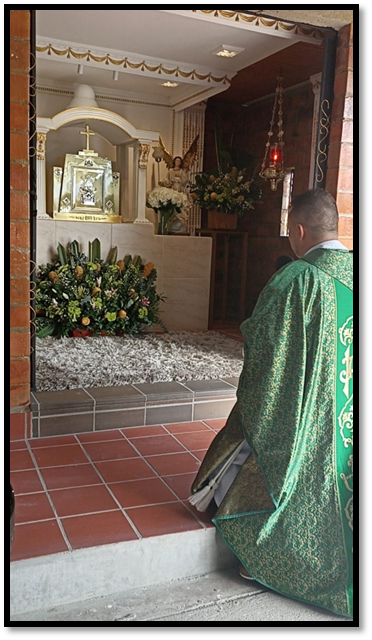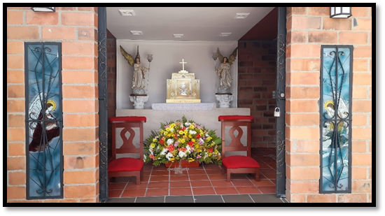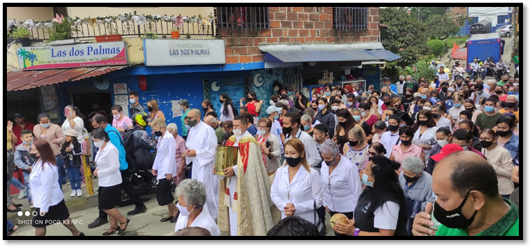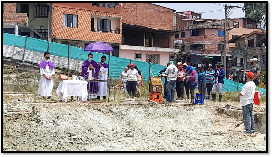 El 12 de diciembre del 2021 se llega la fecha esperada y con una oración especial, la exposición del Santísimo y el acompañamiento de la comunidad, se realiza el desplazamiento en procesión desde la casa de las Hermanas Claretianas hacia el lote parroquial. La alegría, motivación y palabras de aliento de la comunidad hacen que esta fecha sea muy especial y significativa. Se termina la procesión con una hermosa eucaristía a la cual acude el Padre Carlos Arturo, Vicario Episcopal Zona Norte. Se hace la bendición del lote y se lleva el Santísimo al lugar de reposo destinado especialmente para él.
