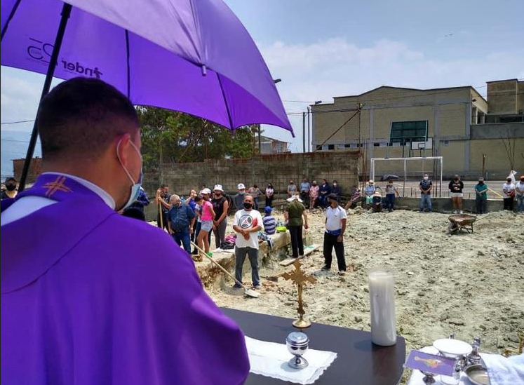 El trabajo de la comunidad da sus primeros frutos con la adecuación del lote para las celebraciones de la semana santa 2021. La comunidad en conjunto con el Padre Alexander y las personas que conforman los grupos de la parroquia, realizan jornadas de limpieza y remoción de escombros. El trabajo avanza de manera significativa y se logra acomodar algunas carpas y así ordenar el lugar para acoger a la comunidad en las celebraciones principales de la semana santa. Durante esta época sigue creciendo la cantidad de infectados por la pandemia del COVID-19 lo que ocasiona que se generen restricciones en los horarios y cantidad de personas que pueden reunirse en espacios públicos. A pesar de las restricciones dadas por el gobierno nacional, se logra realizar de manera ordenada y cumpliendo con los protocolos de bioseguridad el encuentro religioso.