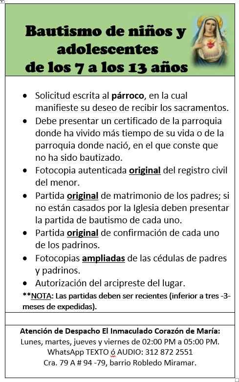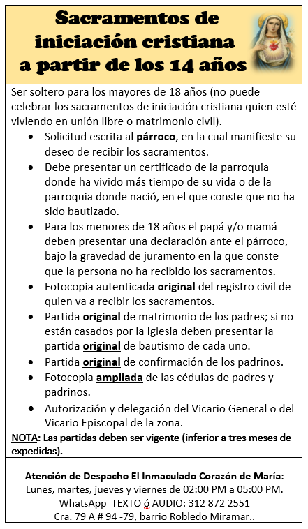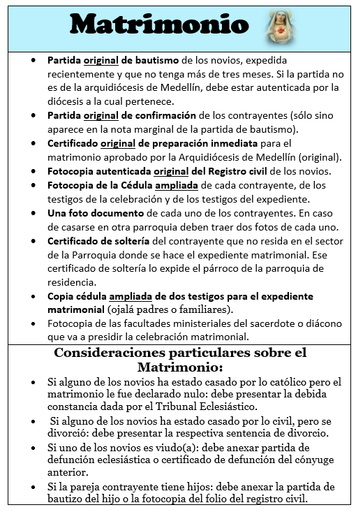 A continuación puedes encontrar los requisitos para cada sacramento: